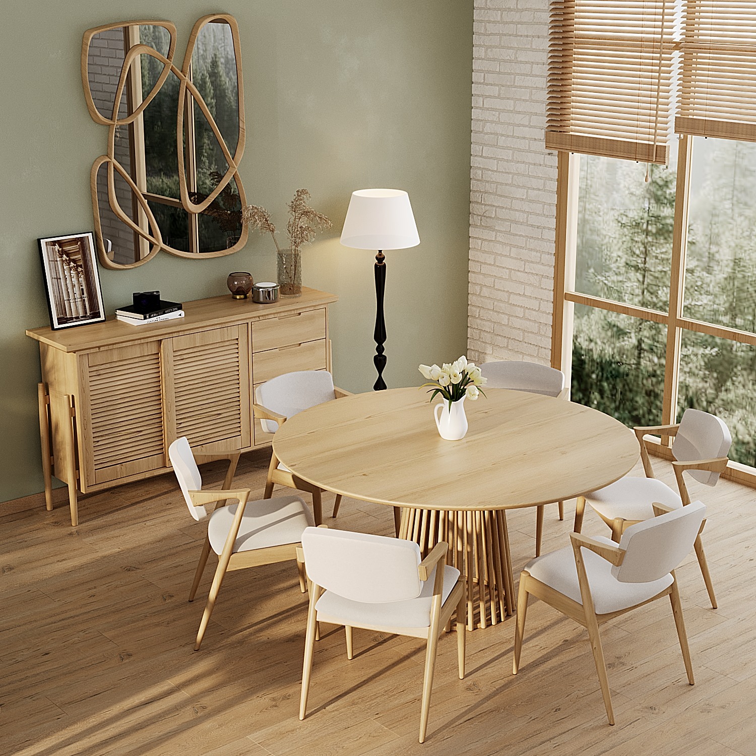 * Doğal meşe ağacının sıcak tonları ve organik desenleri, yemek alanında rahat ve davetkar bir atmosfer yaratır.